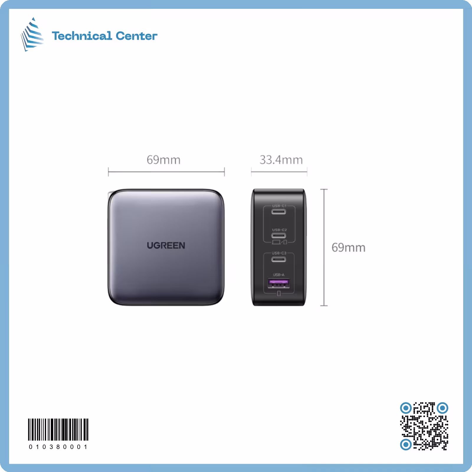 شاحن UGREEN 100W GaN يوفر قدرة شحن عالية تكفي لتغذية لابتوبات مثل MacBook Pro، إضافة إلى شحن الهواتف والسماعات والأجهزة اللوحية في نفس الوقت عبر 4 مخارج: ثلاثة USB-C ومنفذ USB-A. يعمل بتقنية GaN التي تمنح كفاءة أعلى وحجمًا أصغر وحرارة أقل. يدعم بروتوكولات الشحن السريع مثل PD 3.0، QC 4+، PPS، وغيرها. يأتي باللون “الضبابي البحري”ويُقدَّم مع كابل USB-C بطول 1 متر حسب الباقة. مناسب للسفر والاستخدام اليومي مع حماية ضد الجهد الزائد، التيار الزائد، وارتفاع الحرارة.